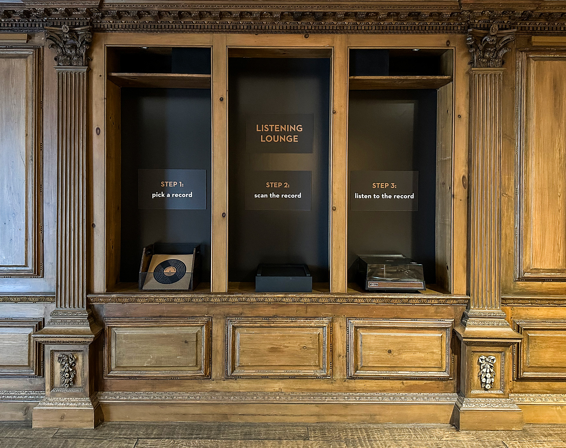 This exhibition at The Westmoreland presented works inspired by music. One of the galleries for the exhibition hosted a jazz listening lounge interactive that invited guests to scan a record and hear a song.